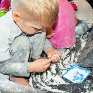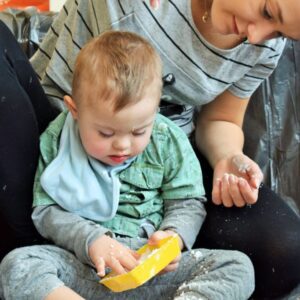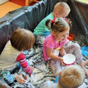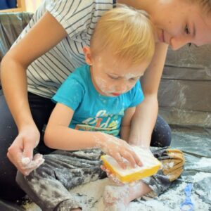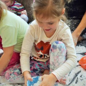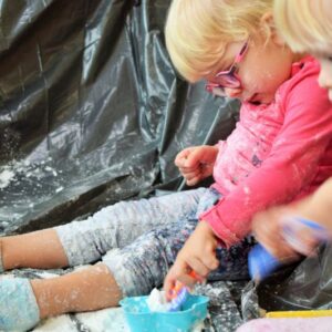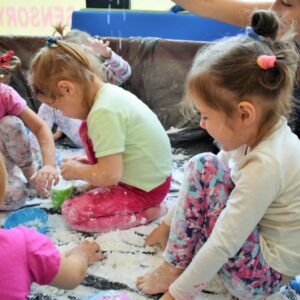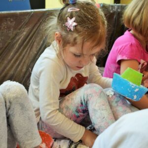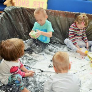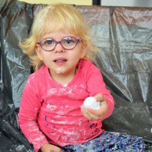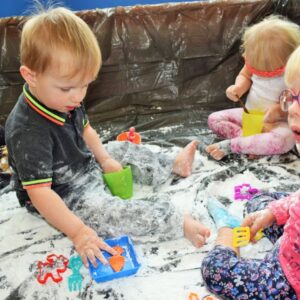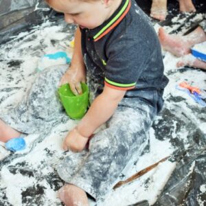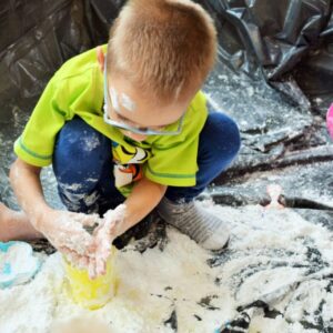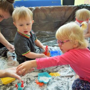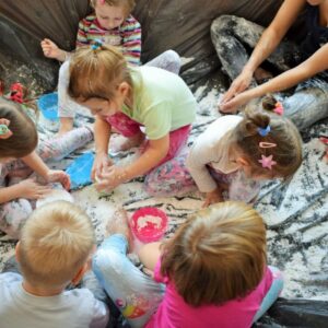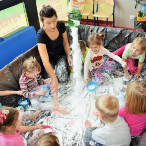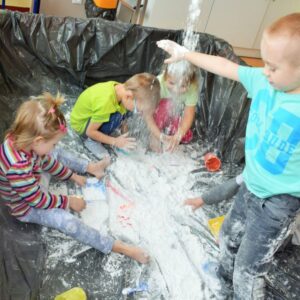 Śnieg w basenie to jeszcze nie spotykane, ale w Ami jest to możliwe. Dzieci świetnie się bawiły tworząc śnieg, a później babki i inne stworki z tej masy. Koniec zajęć był najbardziej zaskakujący kiedy okazało się, że nasze dzieci zamieniły się w bałwanki.