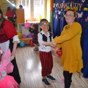 Nasz ośrodek odwiedziły różne postacie z bajek. Był czerwony kapturek z wilkiem, miś panda, myszka Minnie, Spiderman, kobieta Supermana, tygrysek, biedronka, pszczółka, koteczek, aniołek, kowboj, jednorożec, nie zabrakło też księżniczek a także wiele innych barwnych postaci. Nawet odwiedzili nas przybysze z dalekich krajów, a mianowicie Chińczyk Staś i Meksykanin Julek.