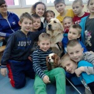 Oto TOSIA… nasza przesympatyczna goldenka. Nasze psy wraz z terapeutami odwiedziły dzieciaki w Szkole w Brzeźniu dziękujemy za zaproszenie. Była zabawa z edukacją. Bardzo się Wam podobało więc do zobaczenia za miesiąc…