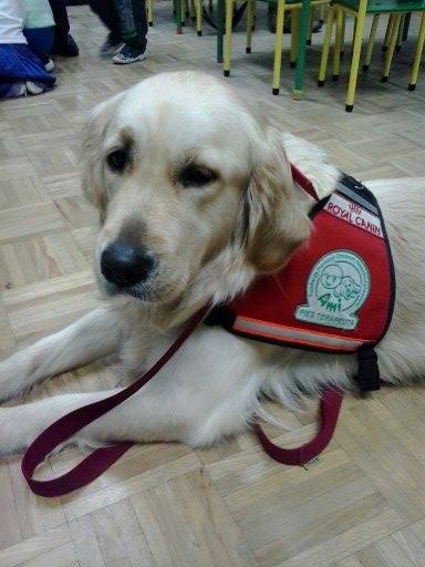 Oto TOSIA... nasza przesympatyczna goldenka. Nasze psy wraz z terapeutami odwiedziły dzieciaki w Szkole w Brzeźniu dziękujemy za zaproszenie. Była zabawa z edukacją. Bardzo się Wam podobało więc do zobaczenia za miesiąc...