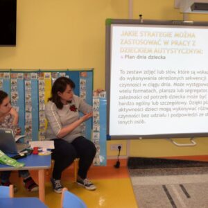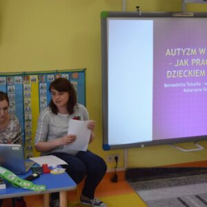 7 kwietnia 2017 odbył się ostatni warsztat z cyklu „ Wiedzy na temat autyzmu” pt. ,,Autyzm w pigułce- jak pracować w domu”. Na spotkaniu poruszone były tematy: czym jest całościowe zaburzenie rozwoju oraz dlaczego tak ważna jest współpraca rodzica z terapeutą. Dodatkowo rodzice dowiedzieli się jakie strategie można zastosować w pracy z dzieckiem: jak stworzyć plan dnia, album aktywności czy metodę koszyczkową. Nasi specjaliści omówili również organizację przestrzeni oraz jak należy mówić do dzieci, żeby nas zrozumiały, wspieranie w samodzielnej pracy, autostymulacje , wzmocnienia i gospodarka żetonowa. Terapeuci przedstawili rodzicom pomoce, które stosowane są w naszej placówce. Dziękujemy Rodzicom za udział J