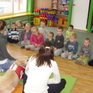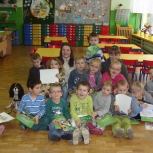 „Odwiedzili nas goście z Fundacji Pomocy Osobom Niepełnosprawnym AMI. Zdobyliśmy wiedzę na temat bezpiecznego kontaktu z psem, wiemy jak należy zachować się w razie ewentualnego ataku, robiliśmy ,,żółwika”, a Luna sprawdzała, czy robimy go dokładnie. Dowiedzieliśmy się czego nie wolno robić w obecności psa, karmiliśmy pieska podczas zabaw. Wszyscy otrzymaliśmy dyplomy i kolorowanki o tematyce projektu ,,Mój bezpieczny pies”, ważny był również uścisk łapy Daisy.”