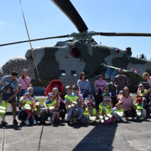 Potem wspólnie z całym przedszkolem i naszymi ciociami byliśmy gośćmi 32. Bazy Lotnictwa Taktycznego w Teodorach.