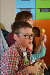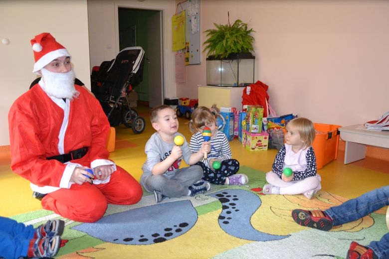 Ja kto na to święto wypada dzieci odwiedził Mikołaj. Jedak co to była za Mikołaj. Wesoły, z radością i uśmiechem przywitał dzieci. A, że lubi ten nasz Mikołaj śpiewać i grać razem z dziećmi wykonał mały koncercik muzyczny.