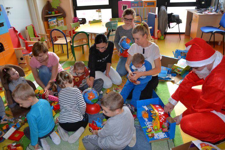 A tu wielka niespodzianka, Mikołaj obdarował dzieci stosem przepięknych zabawek nowych do przedszkola, aby umilić dzieciom czas w przedszkolu.