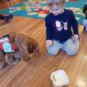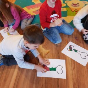 Ostatnio, w okresie przedświątecznym Bella i Luna odwiedziły dzieci z Niepublicznego Punktu Przedszkolnego Akademia Malucha w Zduńskiej Woli. Podczas zajęć dzieci miały okazję zrobić sobie pamiątkowe zdjęcie z psimi Mikołajkami, którym następnie wręczyły własnoręcznie zdobione plasteliną prezenty.