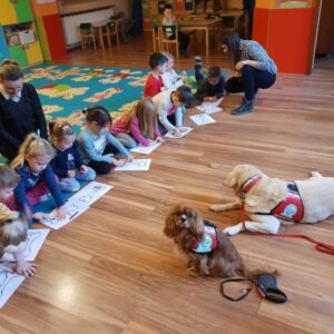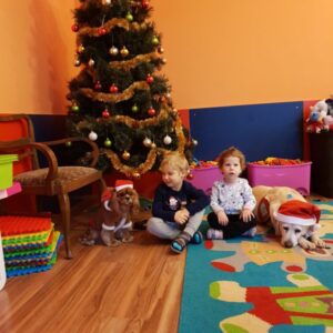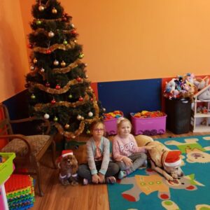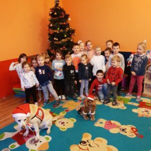 Ostatnio, w okresie przedświątecznym Bella i Luna odwiedziły dzieci z Niepublicznego Punktu Przedszkolnego Akademia Malucha w Zduńskiej Woli. Podczas zajęć dzieci miały okazję zrobić sobie pamiątkowe zdjęcie z psimi Mikołajkami, którym następnie wręczyły własnoręcznie zdobione plasteliną prezenty.