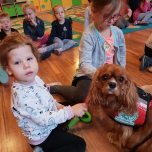 Fundacja AMI w Zduńskiej Woli regularnie odwiedza różne instytucje i placówki oświatowe prowadząc zajęcia z dogoterapii.