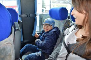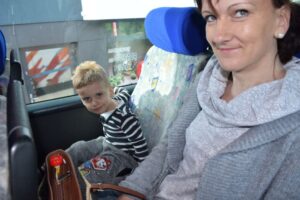 Na początek z utęsknieniem wyglądaliśmy na autobus, bo podróż autobusem to też duże przeżycie: