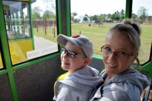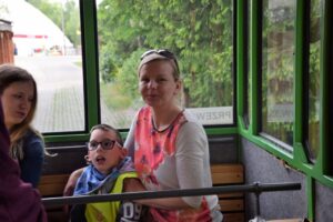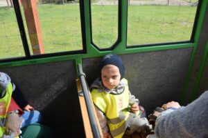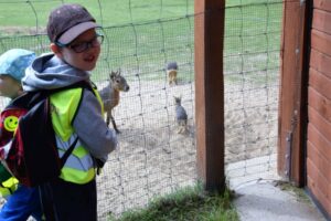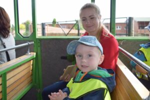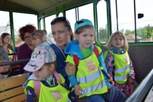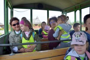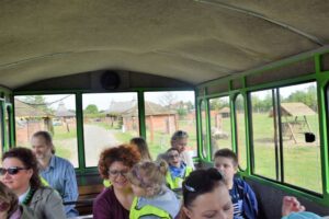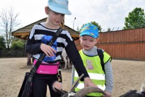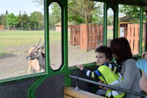 Dzieci podróżując kolejką podziwiały zwierzęta,
