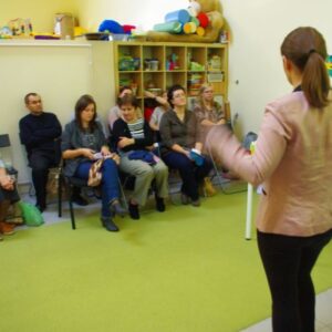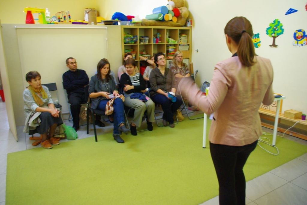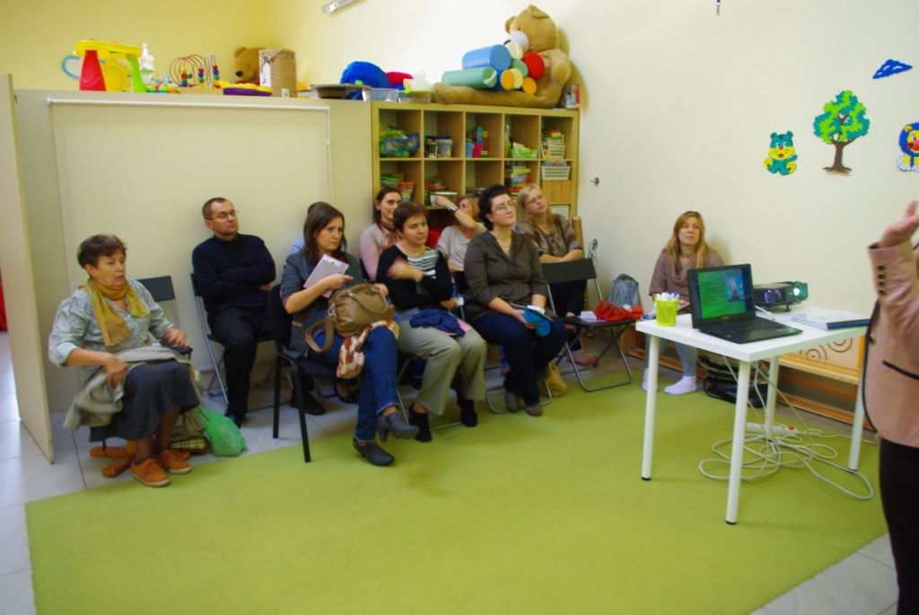 Ewelina Turkowska, nasza rehabilitantka, która prowadzi w Fundacji terapię integracji sensorycznej, zorganizowała spotkanie z rodzicami swoich podopiecznych. Podczas zajęć, rodzice dowiedzieli się więcej na temat metod pracy rehabilitantki, a także samej integracji sensorycznej.