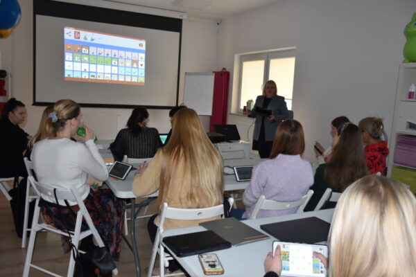 Terapeuci dowiedzieli się jak dostosować ustawienia i tablice MÓWika do potrzeb indywidualnych użytkowników, włącznie z użytkownikami z niepełnosprawnością rąk.