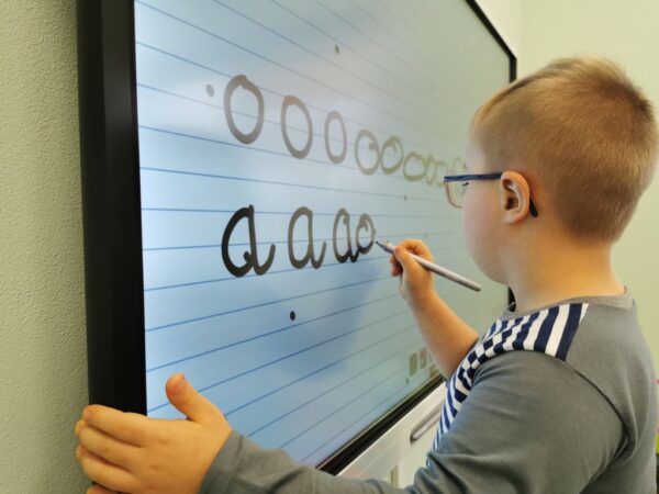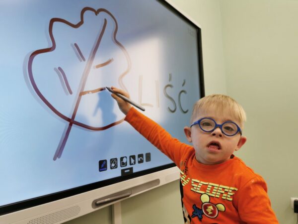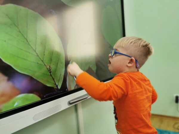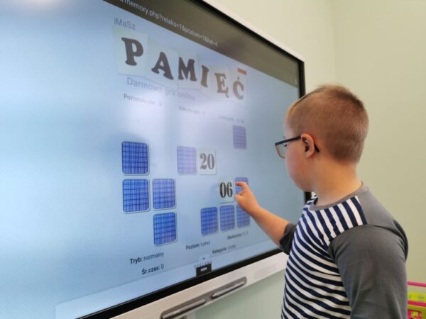 Podczas zajęć Szymon i Dawid uczyli się poprzez zabawę z wykorzystaniem tablicy interaktywnej i laptopa, na których dostępne są programy „Harmonijny rozwój”, „Akademia umysłu” i „Dr Omnibus” i wiele innych. Chłopcy ćwiczą spostrzegawczość, koncentrację uwagi oraz utrwalają wiadomości poznane podczas zajęć w szkole i przedszkolu. Grają w gry na dopasowywanie, dobieranie w pary, odszukiwanie różnic. Szymon chętnie pisze i odczytuje wyrazy na laptopie, natomiast Dawid lubi kolorować obrazki na tablicy interaktywnej. Jak widać nauka z wykorzystaniem technologii jest fajna!