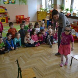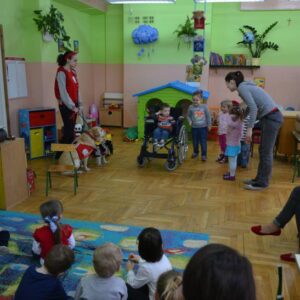 W ramach akcji edukacyjnej „Z psem za pan brat…” wraz z pracownikami Banku BGŻ zawitaliśmy do Przedszkoli przy ul Żytniej i przy ul Szadkowskiej w Zduńskiej Woli, aby poprzez zabawę przybliżyć dzieciom problem niepełnosprawności tzn z jakimi trudnościami na co dzień borykają się osoby niepełnosprawne. Dzieci pokonywały różne przeszkody nie widząc czy poruszając się na wózku i jak same stwierdziły – nie jest to takie łatwe.